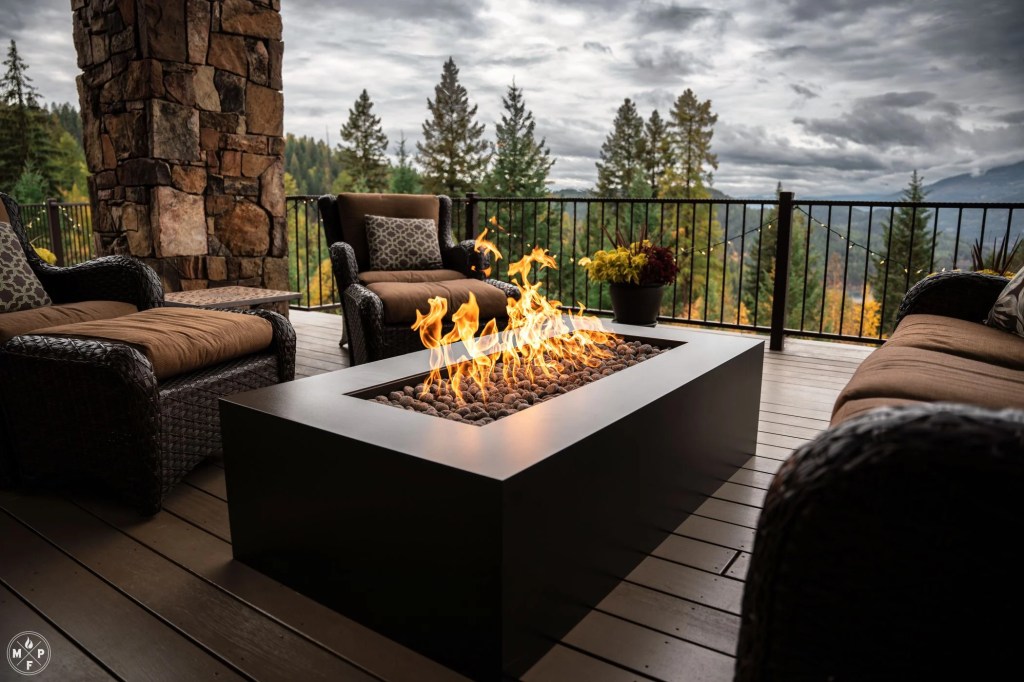 Or…think about an evening with the adults out back. Enjoying cocktails-and-conversation on a cool, brisk autumn evening. With a fire safely and brightly simmering in your fire pit.